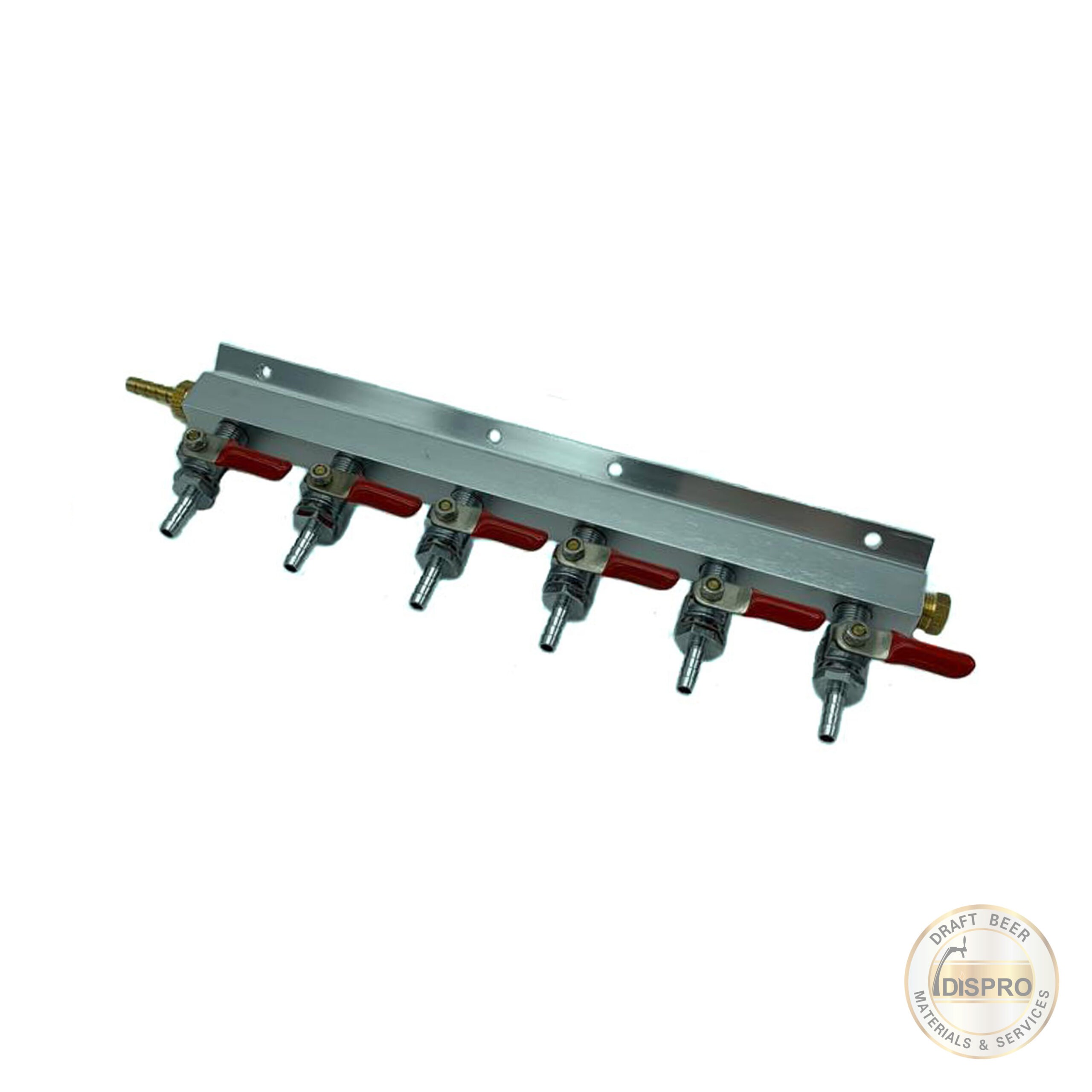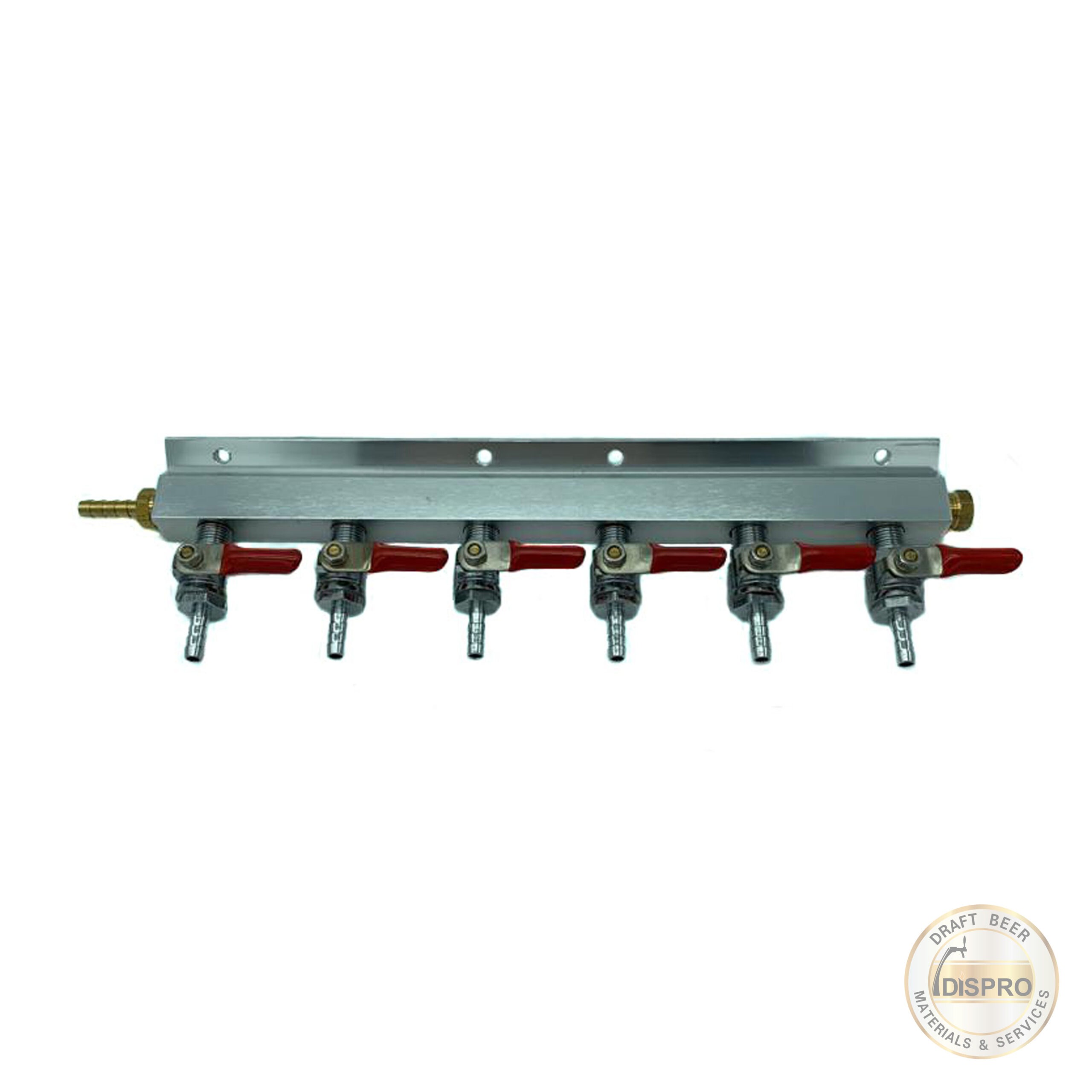 Colector de gas de 2 a 6  salidas de espiga con llave de paso.