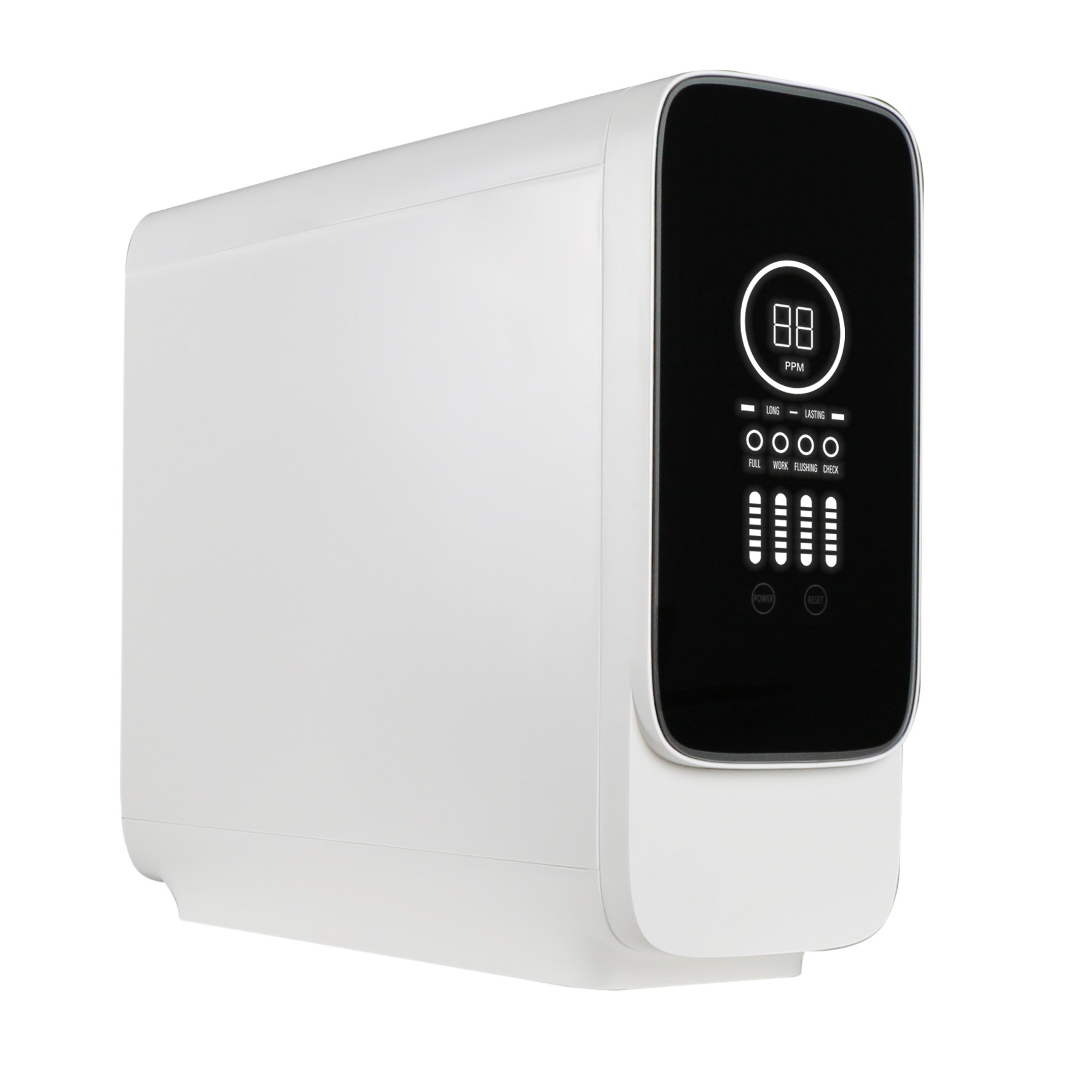 Su display inteligente permite un control total del equipo, mostrando el estado de los filtros, indicadores LED de funcionamiento y alertas de mantenimiento. Además, cuenta con autolavado automático de membrana, prolongando la vida útil del sistema y asegurando un rendimiento óptimo en todo momento.